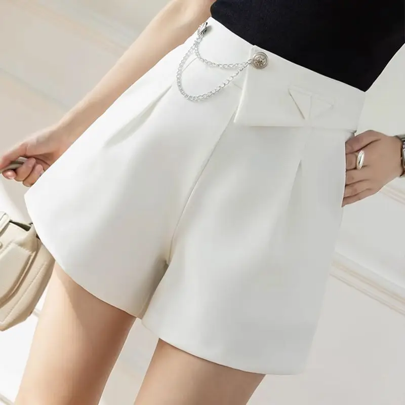韓国風ハイウエストストレートワイドショートパンツ│華奢見えオフィスカジュアル