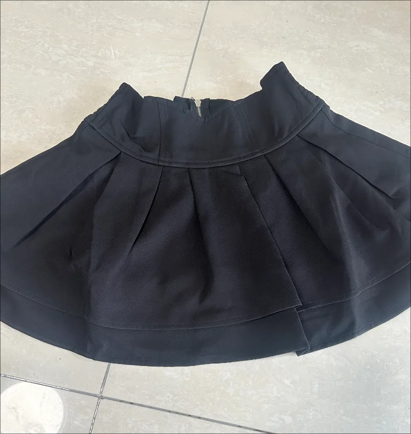 スリム効果:ミニ丈とAラインシルエットで脚長見せ