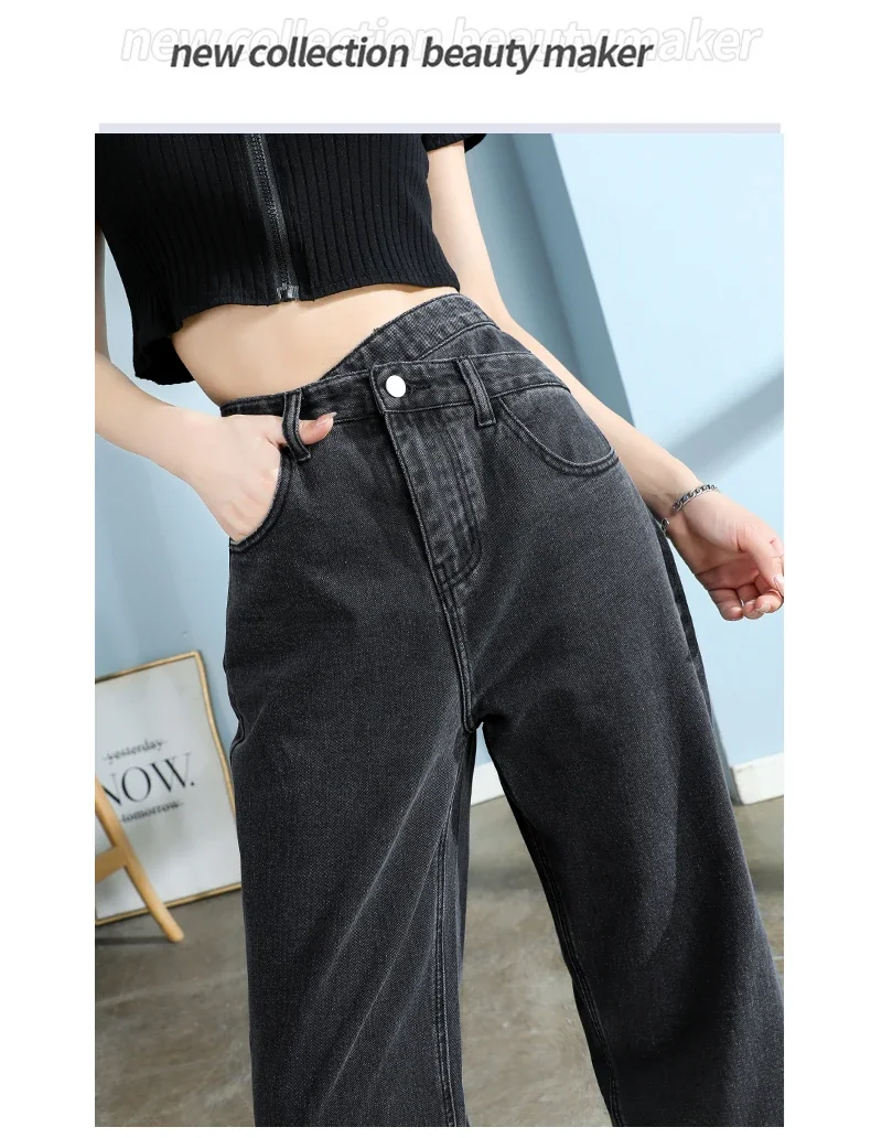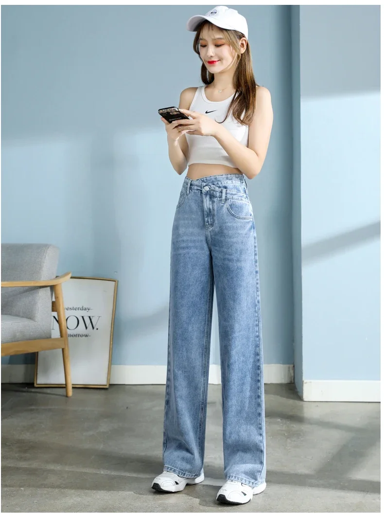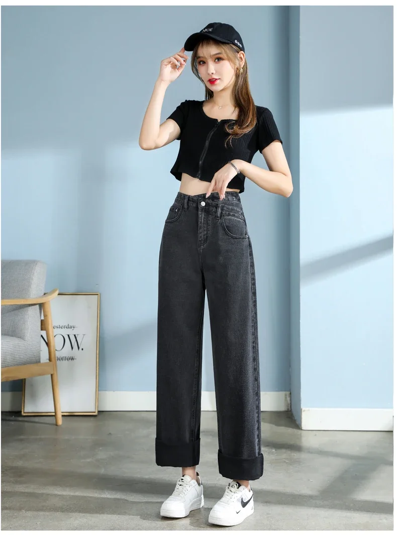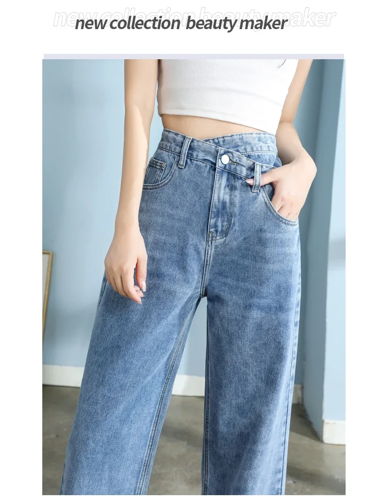 韓国風ハイウエストワイドデニム│Y2Kモムジーンズ