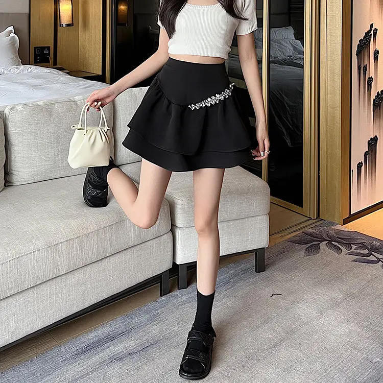 ギャルテイストと韓国シックが融合した、大人可愛いホワイトショートスカート♡ ハイウエスト&Aラインで脚長&細見え効果も抜群。プレミアムな質感で、きちんと感とこなれ感を両立します。